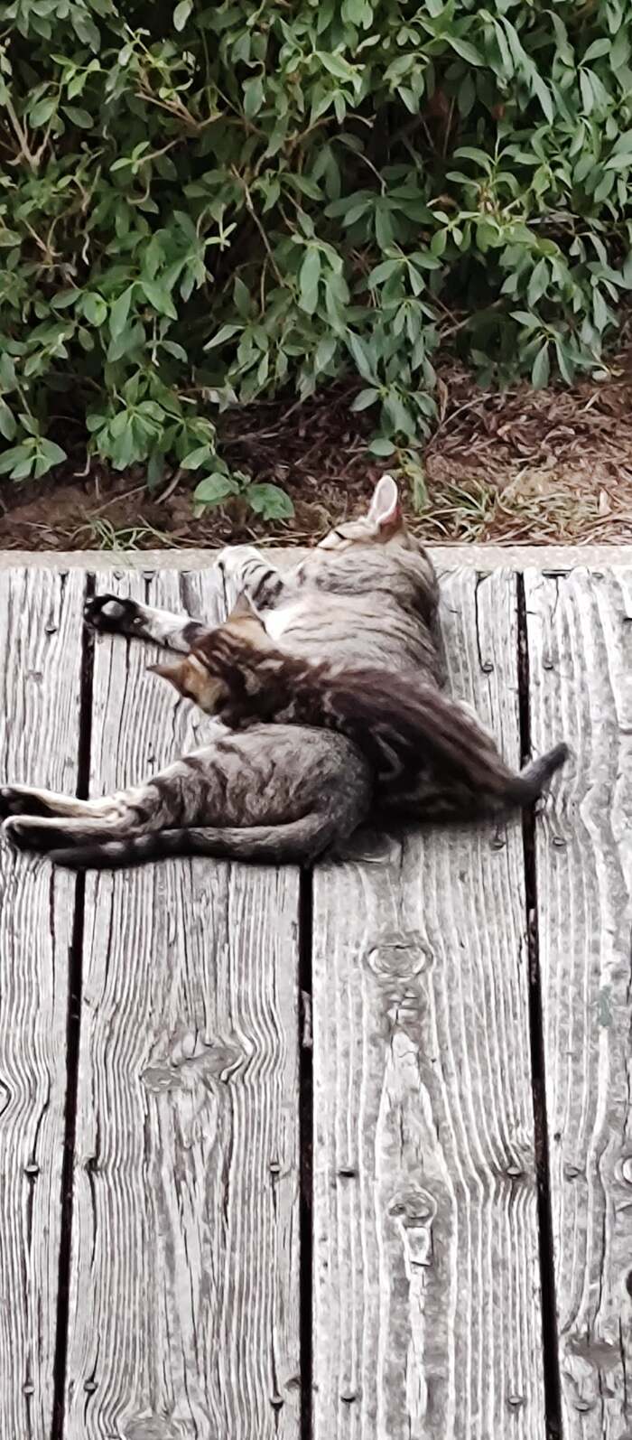 Я решил взять её к себе и стерилизовать, так как она уже довольно старая. Но мне всегда было забавно, что она раз за разом приносила потомство именно ко мне. Почти все котята нашли свой путь в жизни — некоторые до сих пор живут рядом, а я знаю, что часть из них взяли соседи. На последнем фото — их мама.
