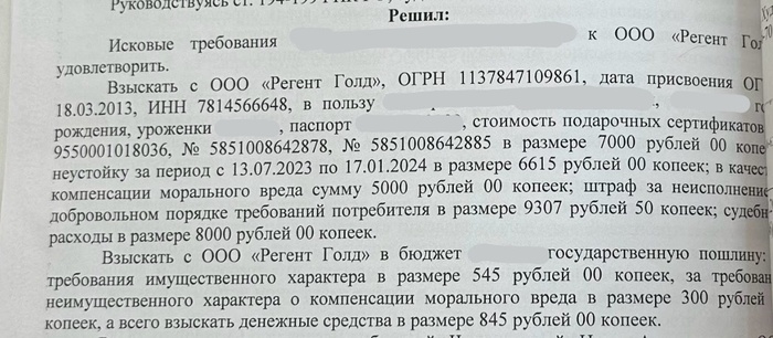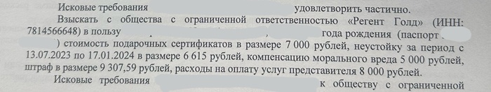 Ответ на пост «Как мы с "585 Золотой" деньги за сертификаты в суде взыскивали»2