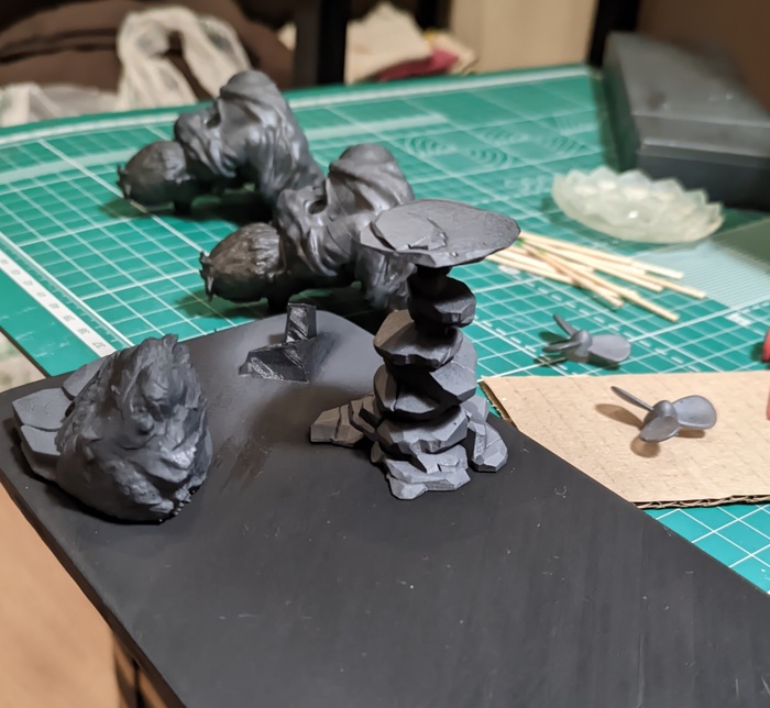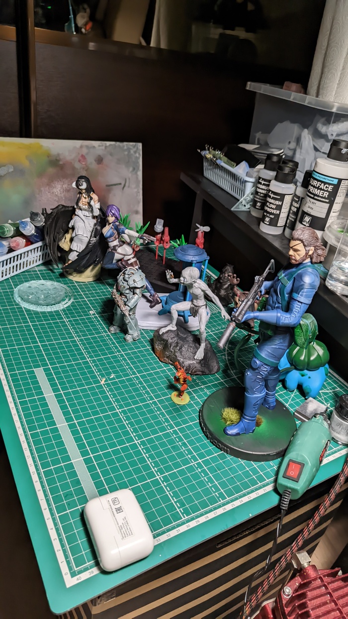 Пока @nospire с нашим общим знакомым доделывали подставку, периодично дергая меня с вопросами под каким углом поставить фигурки, что еще печатать, чтобы я на подставку поставила... А у меня горит! Мне кажется, что времени мало и я не успеваю покрасить =))))
