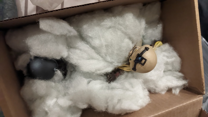 И настал момент отправления и было решено добавить в коробку наполнитель для игрушек дабы максимально перебдеть, но увы, доехали не все, а только подставка с Рико..