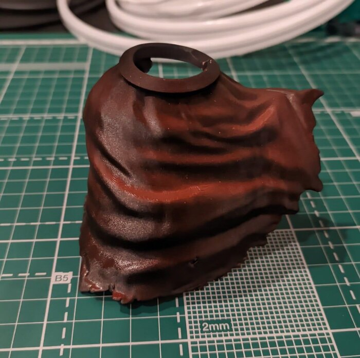 Фото выше сделано до отправления, а что касаемо процесса =) Очень рекомендуем смотреть под шляпы, потому что первая попытка напечатать Рику была немножко неудачной - шляпа кое-как держалась