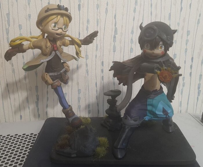 Диорама по аниме Made in Abyss (переделан персонаж Рег, фото будут ниже), фигурки были куплены, а подставка сделана под них отдельно, чтобы собрать её как диораму.