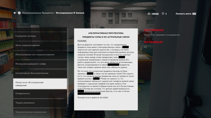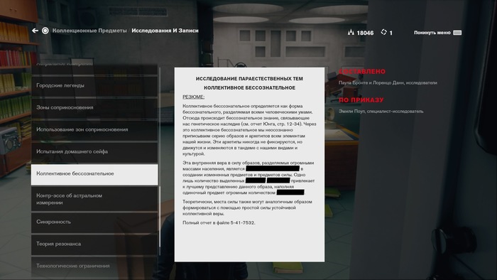 Control лишь фиксирует все эти моменты и упаковывает в лёгкую для освоения форму. Remedy и высказывает вполне очевидную гипотезу причин появления Объектов Силы — символическое насыщение людьми отдельных объектов. Прямо как у Пратчетта, Геймана или в Warhammer 40,000. Для того же, чтобы разночтений не возникало, в Control авторы прямо объясняют свою позицию через записки: