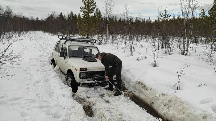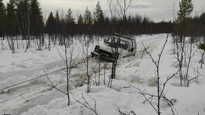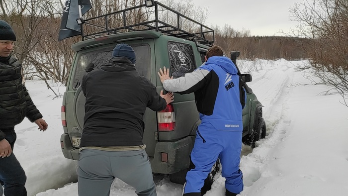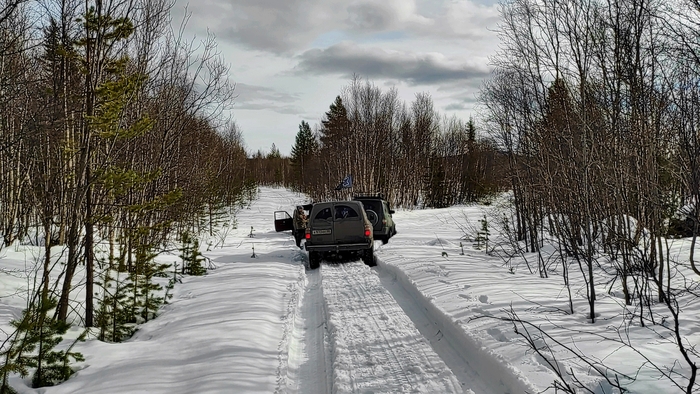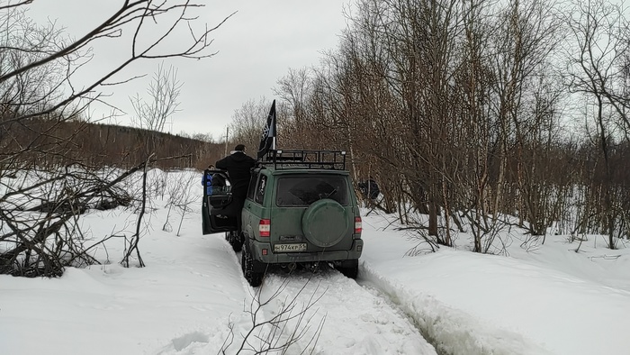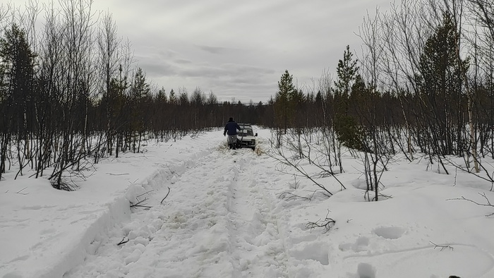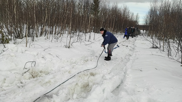Оказалось, что местами снега очень доже много, вот так и рубились до 5 утра, но круг по лесу замкнули...