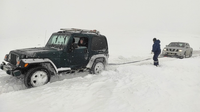 Снега реально многовато, решетки радиатора забиваются, авто греются, но мы не отступаем!