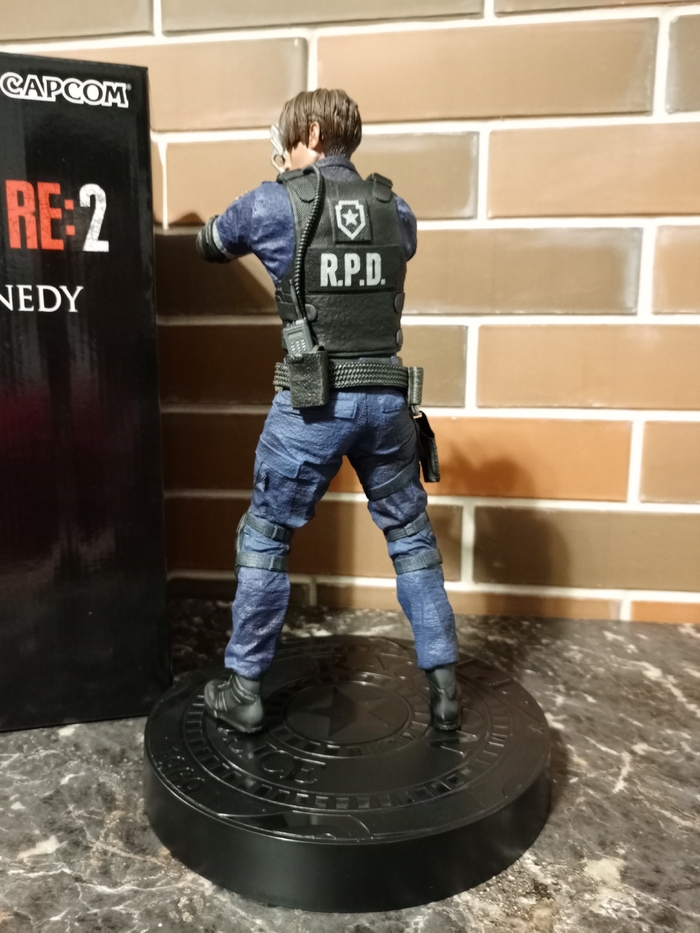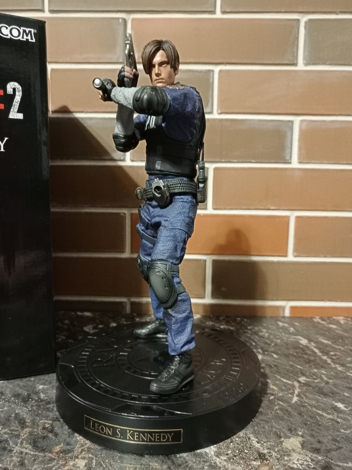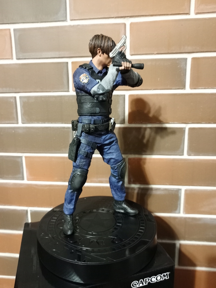 И вот первая фигурка Леона из коллекционного издания biohazard re:2 Leon S. Kennedy. Когда заказывал не обратил внимание на размер, оказался довольно внушительный 32см. Самая большая фигурка на полочке.)