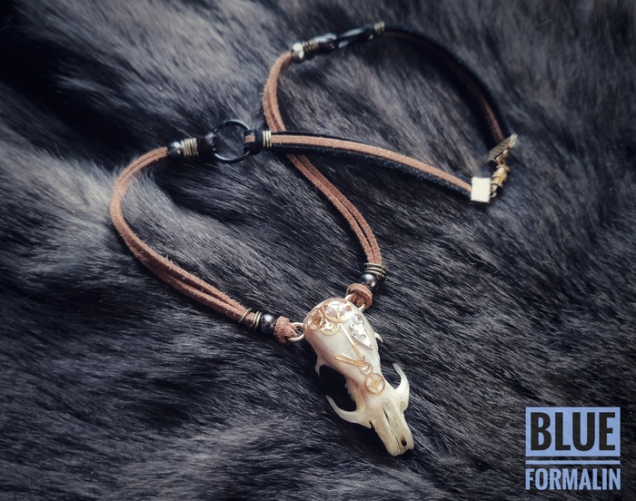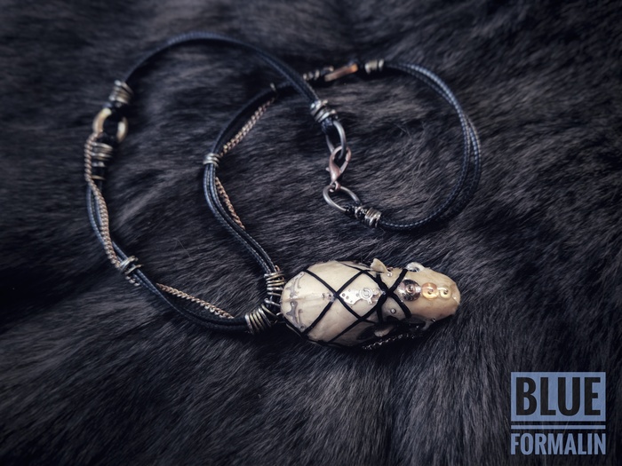 Обработанные черепа, покрытые уф смолой. Внутрь залиты шестерёнки и детали из часов.
