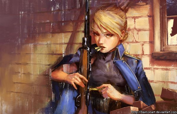 Я думаю тут никто не будет спорить? Ведь Риза это как раз сильная и независимая женщина, что работает телохранителем, умеет стрелять, крепкое телосложение и так далее. Оливье Мира Армстронг точная копия, и выглядит брутально. Эх "Стальной Алхимик" можно пересматривать каждый раз, никогда не надоедает.