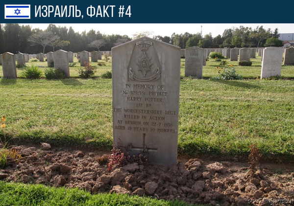 4. На одном из кладбищ в Израиле есть могила Гарри Поттера. Это был 17-летний рядовой армии Великобритании, который погиб в 1939 году. После выхода книг Дж. К. Роулинг эта могила стала самой посещаемой в Израиле и была внесена в список местных достопримечательностей.