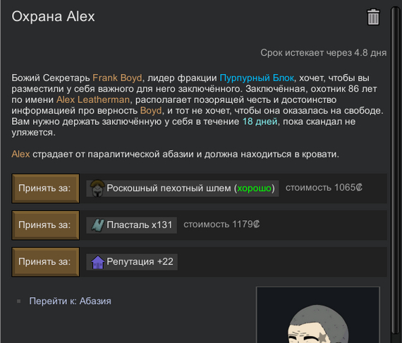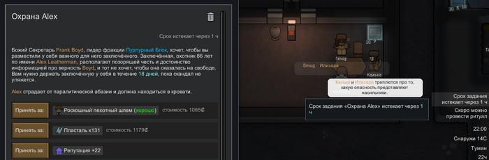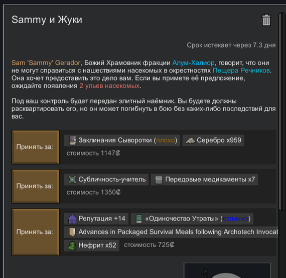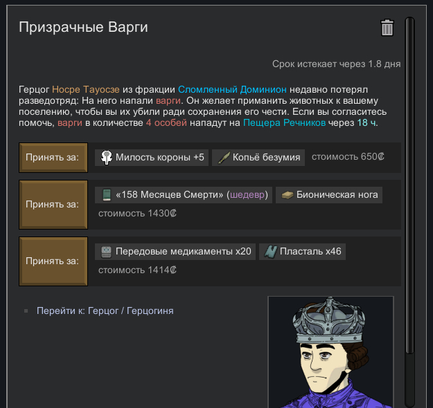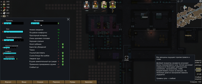 Стоимость поселения: Чем больше у тебя роскошных кроватей, тем сильнее приходит рейд. Это не совсем правильно, так как кровати, покрытия не могут атаковать. Но формулу модом не меняем. Самое дешёвое: покрытие Бетон, Изделия из камня, деревянные Двери, туника +удобная в переодевании, так как покрывает всё тело (для оптимизации обновления одежды, сжигай старую 0-50%, пешка сама оденет новую и скинет старую), автомат. Отсутствие био-архо протезов. У вампира иммунитет к карциноме, можно поставить Ядерный желудок и нарушение репликации клеток. Архо-протезы, генетика хоть и повышает боевые навыки, но не делает пешку "Клириком Эквилибриума". НО РАДИ ЧЕГО Я ИГРАЮ?, МОЯ ПЕШКА, и мой sняха... ЭТО ЖЕ КРУТО: