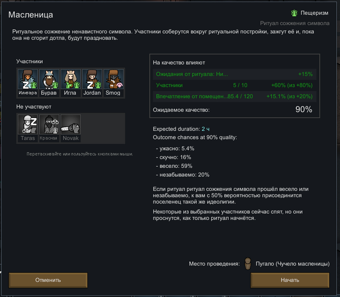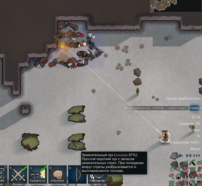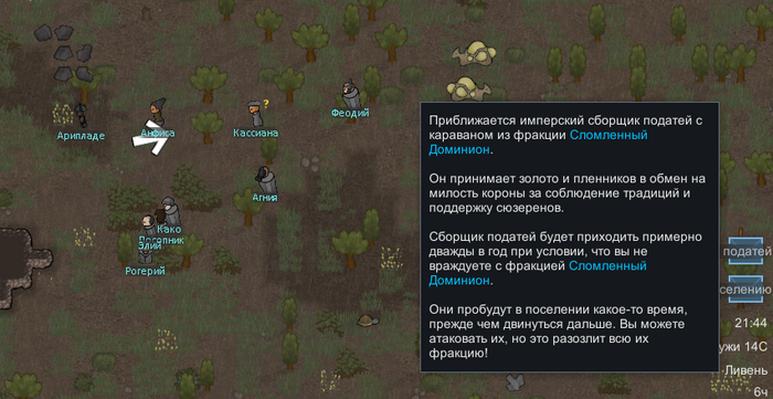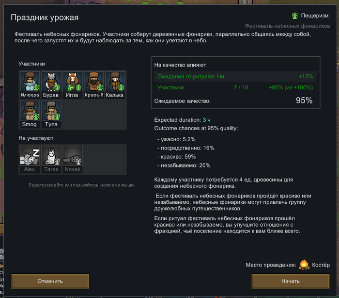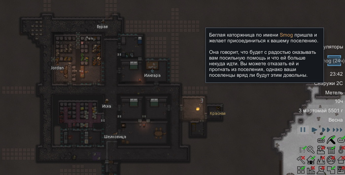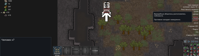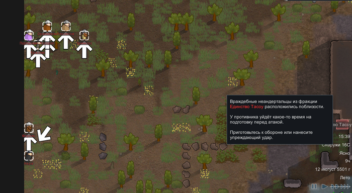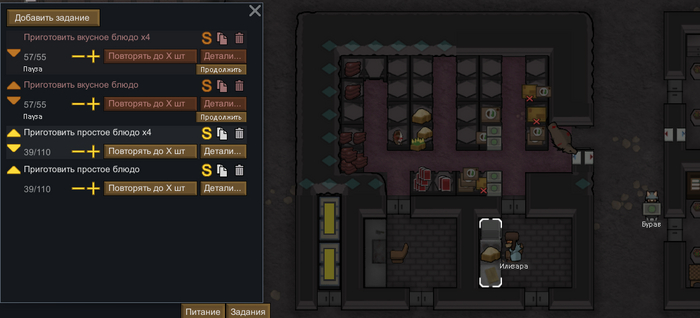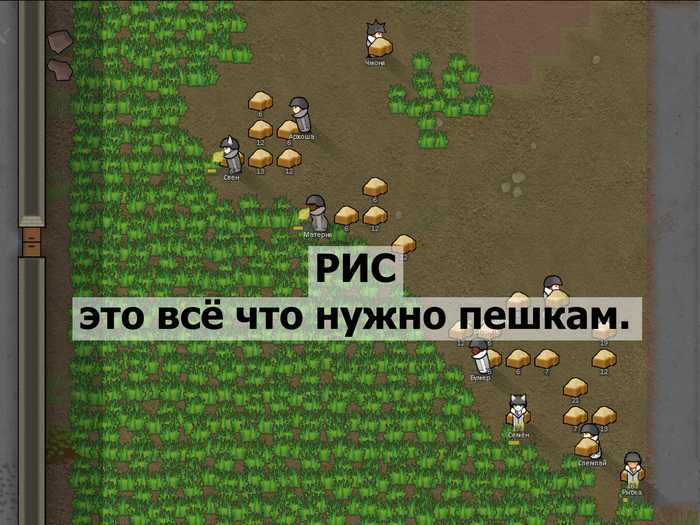 Нужду в зданиях, ресурсах, оптимальнее проверять на глаз* а не рассчитывать заранее по питательности (1.6) пешки. Если еды не хватило - закупи у других поселений, убей животных, убей пешек и в будущем расширь поле, излишки также продашь - это быстрее, БЫСТРЕЕ! Если пешки долго делают оружие, поставь второй верстак, ПОСТАВЬ ЧЕТЫРЕ ВЕРСТАКА, ЗАПРЕТИ СПАТЬ, ЗАСТАВЬ ВСЕХ СТРОИТЬ ВЕРСТАКИ. Если ты всё заранее рассчитаешь и не буишь расширяться, то получится скучное автономное поселение (но не на проигрывать - весело).