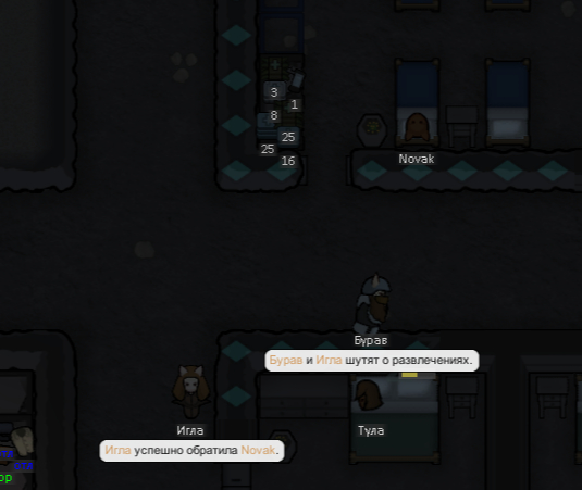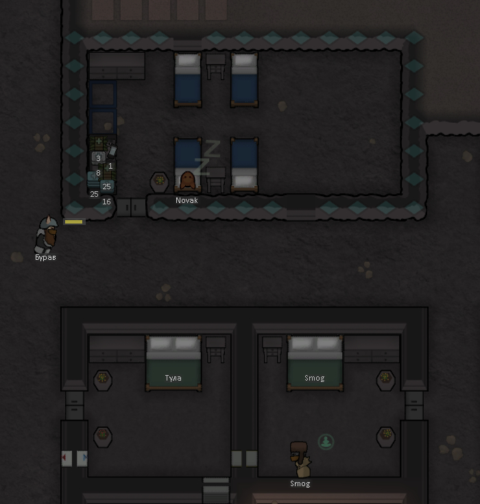 Кухня 3х2, со стерильной плиткой. Холодильнику нужны двойные двери и кондиционеры внутри стен, чтобы их не ломали рейдеры, ставить двойные стены ОПАСНО из-за пожара его буит невозможно потушить! и всё сгорит! ВСЕ УМРУТ ОТ ГОЛОДА!! Построй ещё один кондиционер! Исследовательскую не обязательно оформлять в отдельную комнату со стальной плиткой, но в случае чего, её можно переоборудовать в высокоточные станки с шкафами инструментов вместо мультианализатора, после завершения всех исследований. Геотермалку каждую окружай стенами, а то я буду плакать, если её сломают рейдеры. На складе лучше сделать отверстие в потолке если не в скале, чтобы в случае пожара не было высокой температуры. Потеря склада может привести к потере желания играть, но НЕ СДАВАЙСЯ, если хоть одна пешка жива.