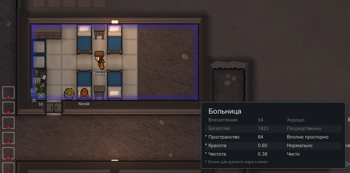 Кровати стоят в кучу: ПЕШКАМ НЕ НУЖНЫ ТУМБОЧКИ КОМОДЫ РАДИ +0,001% к комфорту! Больница может быть тюрьмой, если не нужны новые пешки.. Так что можешь просто построить две больницы>)