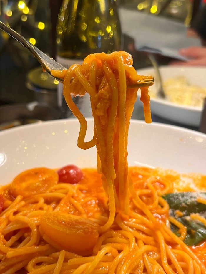 После прогулки мы спустились вниз к Пьяцца дель Пополо, на которой местные уличные артисты показывали выступления. Ну и, уже проголодавшись, зашли в то самое кафе, которому около 90 лет. Паста здесь была самой вкусной за всю поездку: идеально сваренная и с выверенным по вкусу соусом из свежих томатов и базилика.