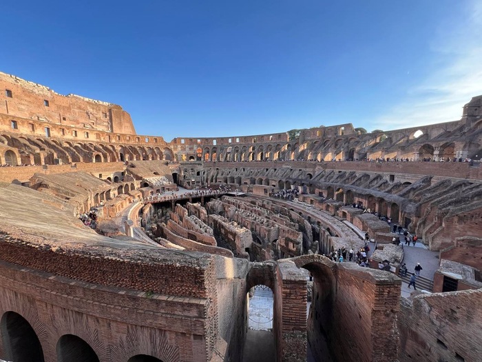 Ну вот мы и дошли до Колизея. В жизни это сооружение просто поражает, каким бы "попсовым" оно ни было. Постройка, которой почти 2 тысячи лет. Строительство первых трёх ярусов началось в 72 году н. э. и закончилось всего через 8 лет. Остальное время ушло на постройку четвёртого яруса. Немногие знают, но Колизей заливался водой, и в нём проходили имитации морского боя.