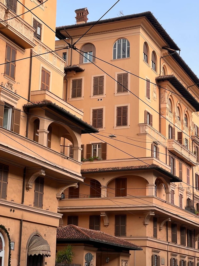 Что всегда подкупает в архитектурном облике итальянских городов — отсутствие кондиционеров (в центре города) и ставни на всех окнах, выполненные в одной стилистике. Ставни помогают экономить на электричестве (не включать кондиционеры) и создают узнаваемую местную особенность.