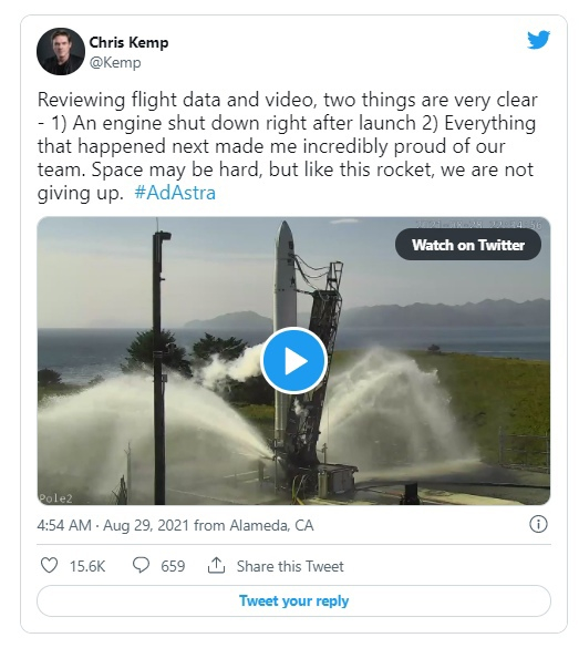 Изучая летные данные и видео, очень ясно видно две вещи: 1) двигатель остановился сразу после запуска 2) все, что произошло дальше, заставило меня невероятно гордиться нашей командой. Космос может быть трудным, но, как и эта ракета, мы не сдаемся.