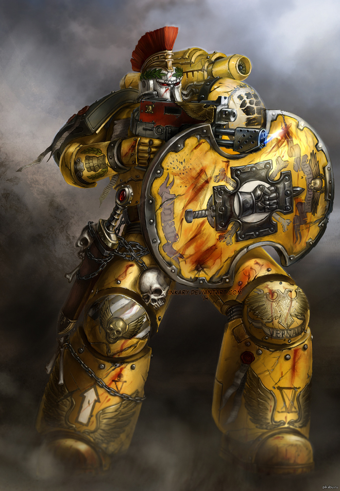 Так или иначе, Имперские Кулаки с самого начала были известны как образцовый легион, возможно даже самый результативный (600 миров за 10 лет все не дают мне покоя…). Они были настолько безупречны, что к ним даже не привязалось никакого прозвища. Смертные и братья Астартес видели в них вовсе не строителей и кастелянов, а истинных крестоносцев, живущих, чтобы воплощать в реальность величайший замысел Императора.