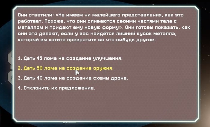 В первом же секторе наш корабль поймал сигнал бедствия и сигнал с предложением поторговать от одной станции-магазина. Денег у нашего доблестного в наличии не имелось, и посему было решено двинуться на сигнал бедствия.