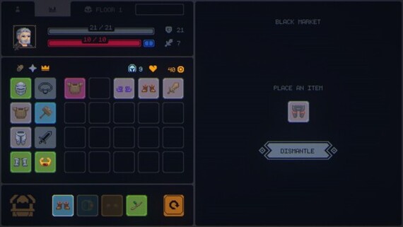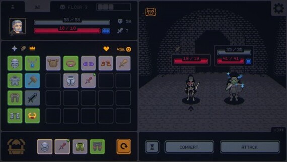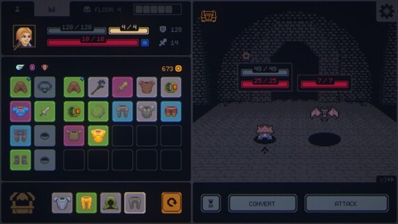 Новая вариация рогалика с управлением инвентарём. Герой одевает на себя снаряжение или уничтожает его для усиления своих способностей.