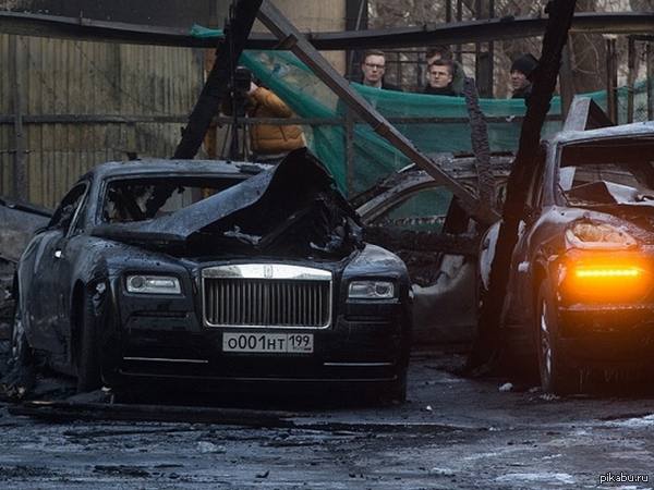 В Москве произошло обрушение пылающей кровли крытой стоянки, и под завалами полностью сгорели Черный, Золотой, Серебряный и Бронзовый Rolls Royce