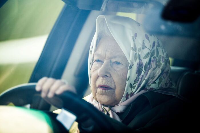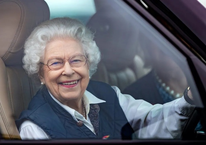 Королева Елизавета II за рулем своего автомобиля Range Rover во время второго дня Королевской Виндзорской конной выставки в Хоум-парке, Виндзорский замок, 2 июля 2021 года в Виндзоре, Англия
