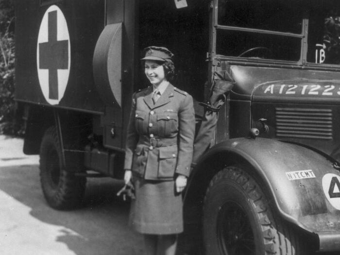 В феврале 1945 года Елизавета II получила военную профессию механик-водитель санитарного автомобиля, когда ей было всего 18 лет