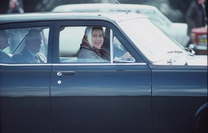 Королева за рулем автомобиля Vauxhall Estate в парке Виндзор Грейт. (точная дата неизвестна). около 1970-х