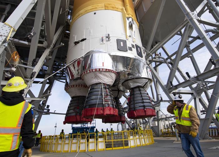 Началась установка двигателей на первую ступень SLS⁠⁠