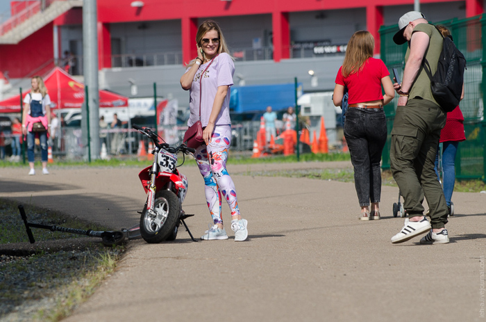 На 30 число погода установилась облачная, без дождя. Приехав на трек, я удивился тому, как всё успело измениться всего за один день: ранее пустая территория парковки была заполнена машинами; в зоне паддока развернули кучу стендов и "зон активности". В этих зонах можно было пострелять из лука или арбалета, поиграть в лазертаг; для мелких личинусов организовали мини-трек, по которому они гоняли на маленьких машинках и беговелах. У большого шатра шутил и наводил движуху ведущий (чуть позже настала пора конкурсов - бессмысленных и беспощадных). Даже мерч можно было купить: продавали футболки с символикой трека и Чемпионата - вот только размерный ряд не предусматривал жиробасного поклонника ШКМГ, так что я ушел с пустыми руками.