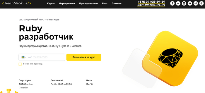 Вы изучите основы объектно-ориентированного программирования, синтаксис языка, работу с базами данных, а также особенности использования фреймворка Rails. В конце вы сможете создать свое первое веб-приложение на RoR. Также у вас будет возможность трудоустроиться в международную IT-компанию.