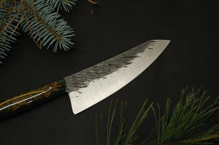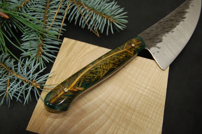 Новая работа - кухонный нож новой формы с настоящей еловой веточкой в рукояти