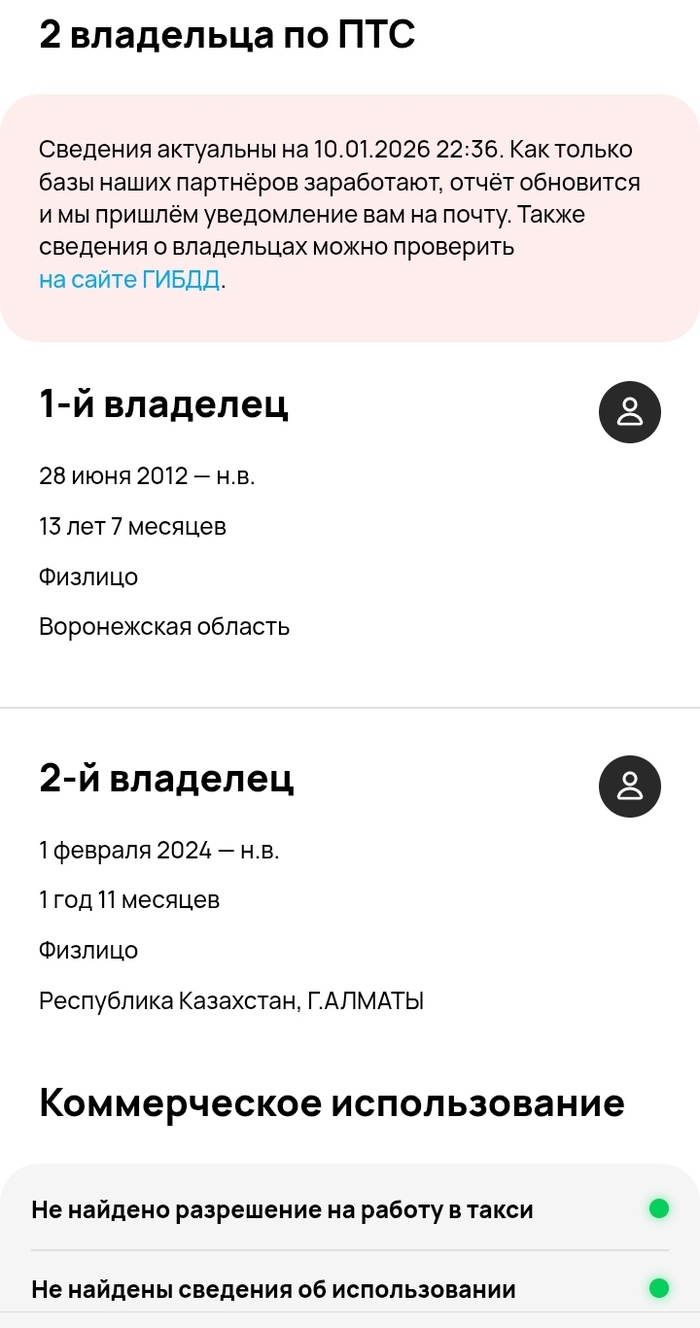 В отчете обнаружил интересную информацию😳.Оказалось.В 2024 г. появился еще один собственник автомобиля , но уже в Казахстане.