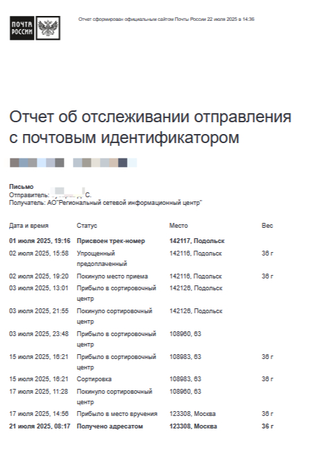 И вот спустя всего 21! день, медленнее чем везут товары из Китая, письмо доехало 30 сука километров до Хамовников, сегодня пришло оповещение что получено.