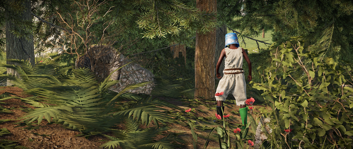 День 2: Бью деревья. Это больно. Сделал инструменты. Это было очень эффективно. Побежал в джунгли с копьём. T-Rex убил меня.