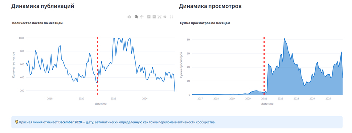В период 2016-2025 постов с видео было 1729, и это наименее популярный по рейтингу и просмотрам контент в нашем сообществе