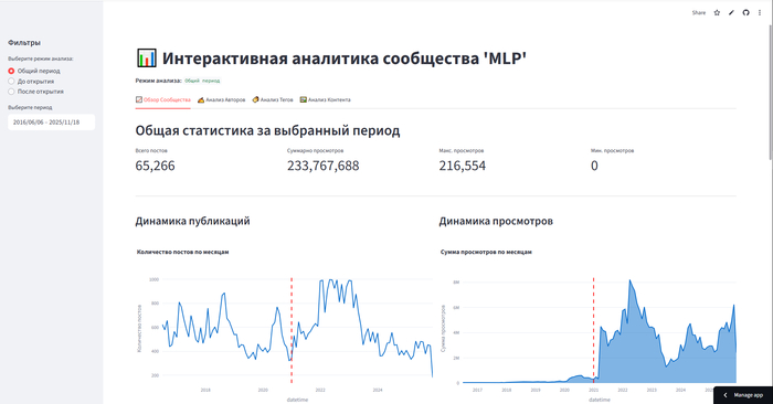 Потрогать руками дэшборд можно тут - https://mlpcommuinity.streamlit.app/
