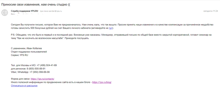 1PS.RU отжигает - рассказ о том, почему нужно внимательно проверять адресатов писем