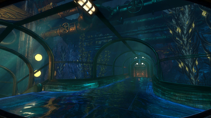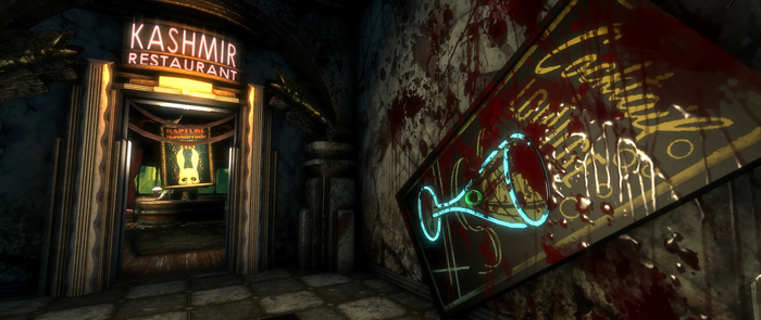 И тут к разработчикам пришло понимание, что копия настоящего города под водой в принципе существовать не может из-за давления на большой глубине, коррозии и несовершенства технологий. Потому Восторг и стал невероятно красочным, впечатляющим городом, вроде как демонстрирующим безграничный потенциал человека и науки. Но с другой стороны, куча стекла, постоянные пробоины и вода на полу, затопленные части города, ржавчина во всех углах явственно говорят игроку о том, что с самого начала задумка Эндрю Райана была обречена на провал.