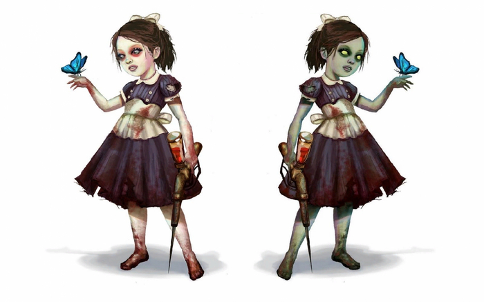 Один из членов команды даже предлагал щенков на колясках без задних лап… но настолько банальный способ выдавить из игроков «пожалейку» был отброшен также быстро, как и закинут в обсуждение. В итоге после обезьянок, карликов и прочих гуманоидных вариантов общая мысль таки нашла образ Маленьких сестричек. Благодаря милому детскому облику и игроку было сложнее решиться на “извлечение АДАМа” из них, и привязанность к ним Больших папочек выглядела и объяснялась более органично.