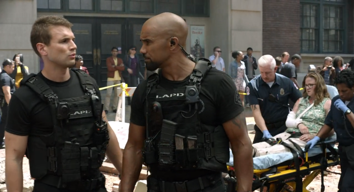 Происходит взрыв, ребята приходят и там только под одной балкой (кто-то уже расчистил всё) лежит единственная девушка соседка террориста.