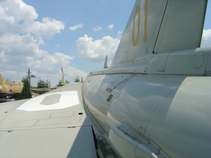 Киль истребителя соединялся с фюзеляжем и центропланом при помощи болтов. В верхней части фюзеляжа находился гаргрот, он начинался сразу же за кабиной летчика, внутри гаргрота прокладывались трубопроводы и кабели. Панель его обшивки была выполнена легкосъемной, что облегчало процесс обслуживания и проведения регламентных работ. В гаргроте же находились воздухозаборники для охлаждения различных систем самолета, а в хвостовой части размещался отсек, в котором хранился тормозной парашют.