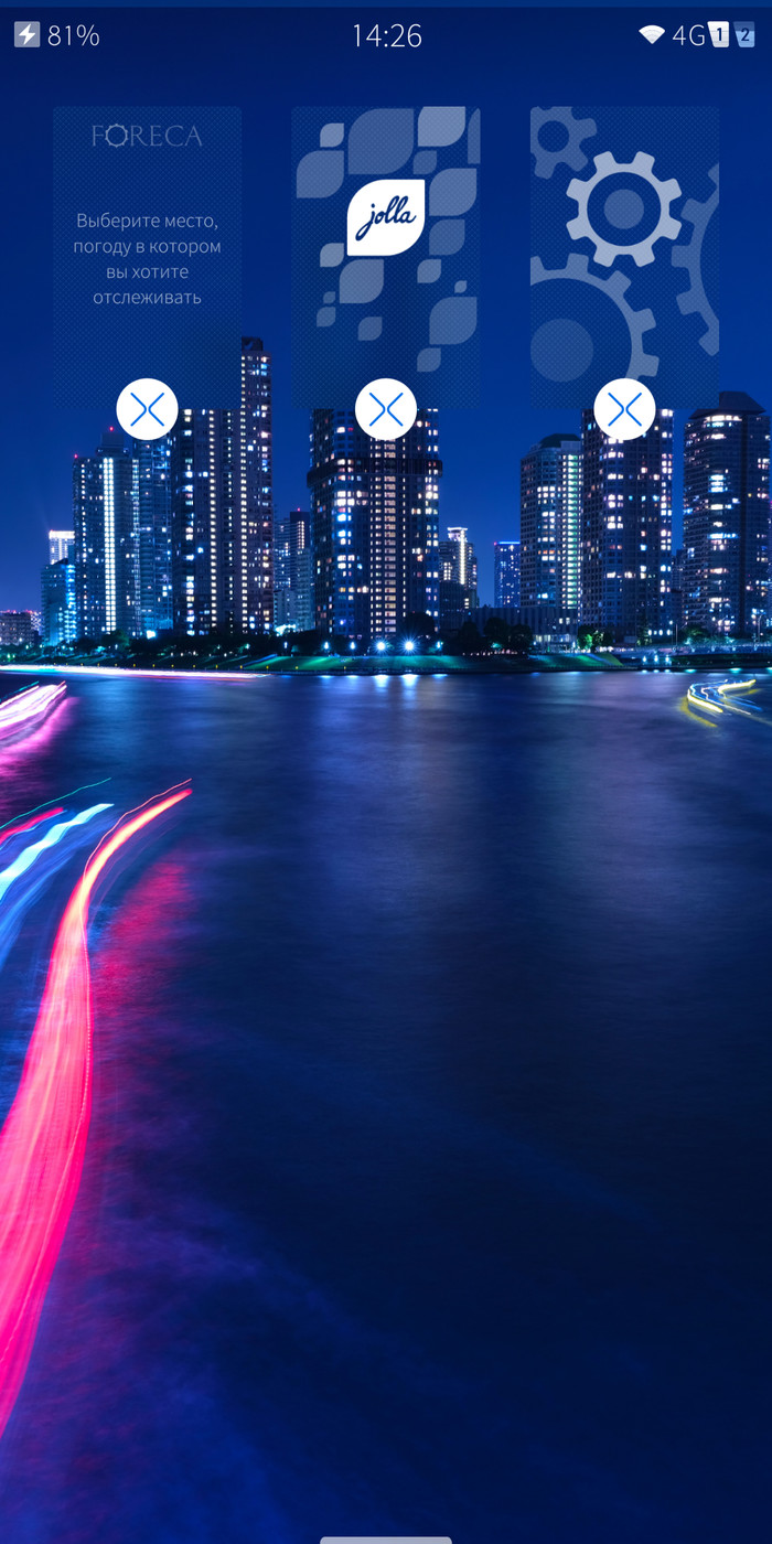 Вернёмся к упомянутому ранее домашнему экрану. Здесь тоже есть свои тонкости. Если в других мобильных платформах этот элемент рабочего окружения обычно содержит ярлыки для запуска часто используемых программ, то в «Авроре» на домашнем экране отображаются обложки активных в данный момент приложений. Закрепить значок какой-либо программы здесь нельзя — вся область задействована для отображения уже запущенного в системе софта. Эдакое подобие минималистичного диспетчера задач с возможностью просмотра содержимого и уведомлений открытых приложений. Такой своеобразный подход к управлению программами тоже поначалу воспринимается в штыки и требует продолжительного привыкания.