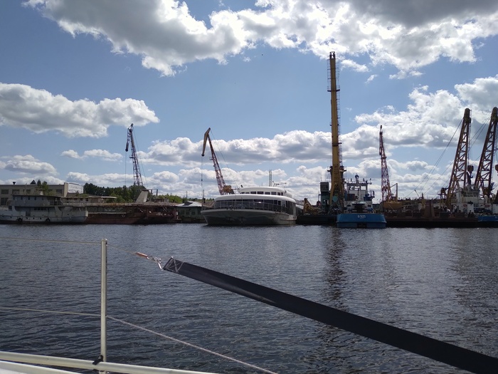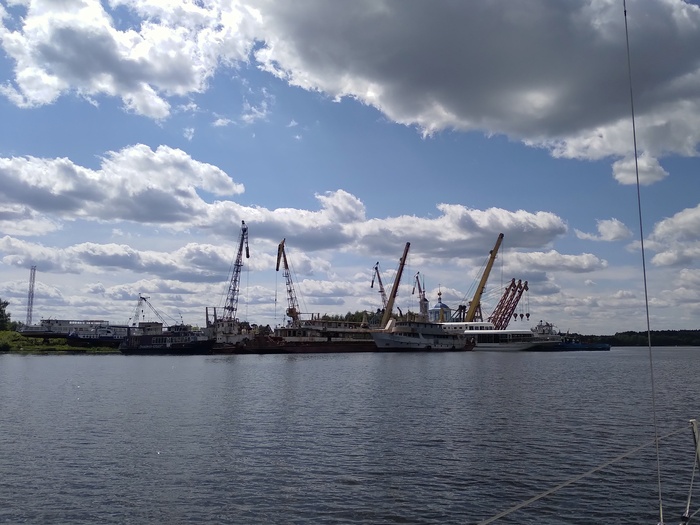 По дороге Сергей опознает редкий экземпляр прогулочного катера «Ярославна» производства Рыбинской Судоверфи, а я вижу на берегу свою мечту - польский 6-ти метровый компромисс «Nash-20». Еще несколько лодок сиротливо стоят на кильблоках, порастая мхом. Печальное зрелище, только свежепокрашенный «Нефрит» радует глаз.