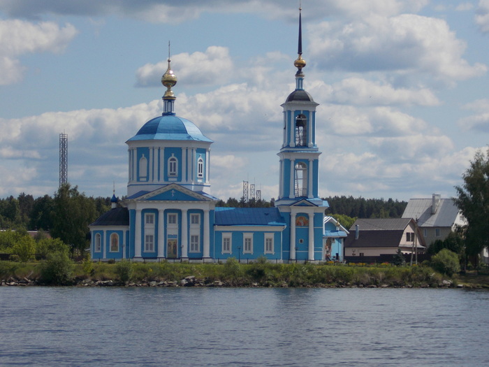 Шагаем на паром, до которого всего 750 метров. Ходит он через каждые 20 минут, с пешеходов денег не берут. А вот до магазина шлепать от парома километра два с половиной по обочине. Закупаемся в семейном «Магните», но увы, ассортимент отличается от привычного в нашем регионе. Бекон приходится заменить колбасой и салом, хлеб тоже непривычный, словом, другая область. Выпиваем по бутылочке холодного пива и проводим традиционную дегустацию местного мороженого ничего, есть можно. Зашли в строительный магазин, я прикупил нержавеющих хомутиков для топливного шланга. Дефицитная позиция и главное пригодились впоследствии. На вокзальной площади осматриваем старинный паровозик с двуглавым гербом империи, и идем назад. Небо потихоньку затягивает, зато не так жарко.