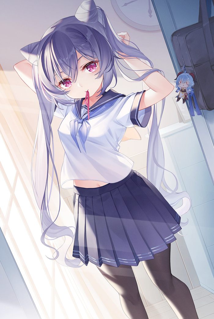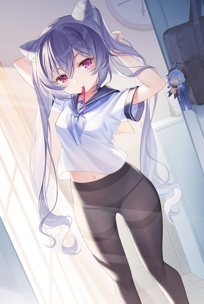 18+ Аниме Anime Art Genshin Impact Keqing (Genshin Impact) Панцу Колготки Sailor fuku Длиннопост