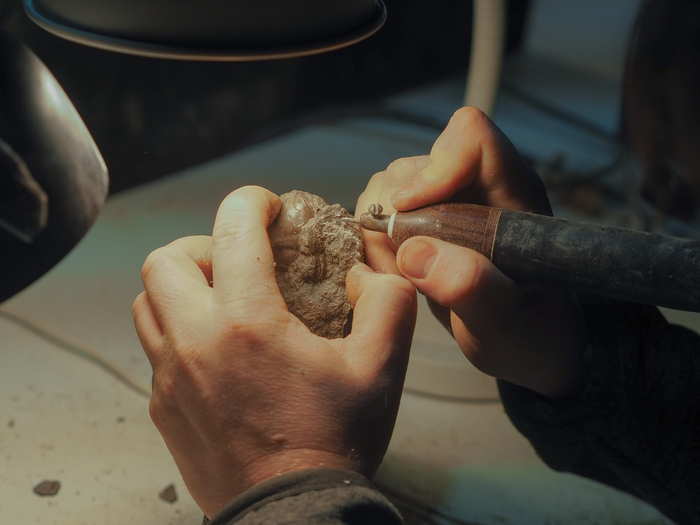 Камень обычно раскалывается по линии трилобита из-за разницы в плотностях. Но не всегда там сидит кто-то ровный и красивый. Это, скорее, суп из окаменелостей с разными запчастями: иногда попадается только хвостик трилобита или только глазки.