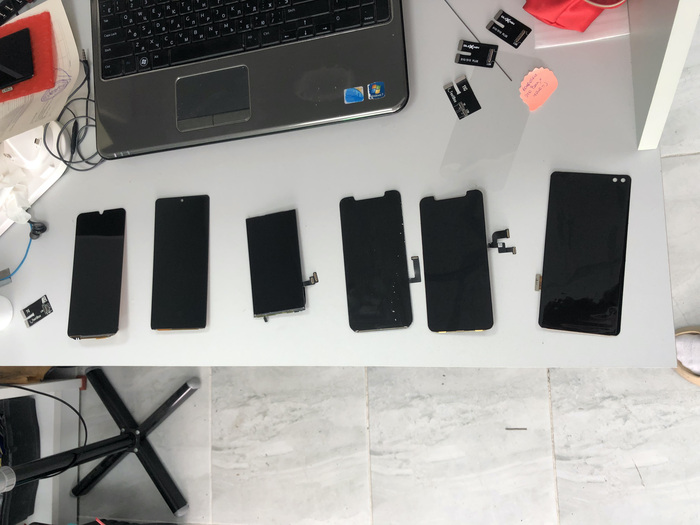 Склеиваем в вакууме стекло с матрицей и достаем готовый дисплей. Собираем все в обратном порядке и любуемся результатом. Промежуточные результаты сфоткать не успел, телефонов много, а я один)