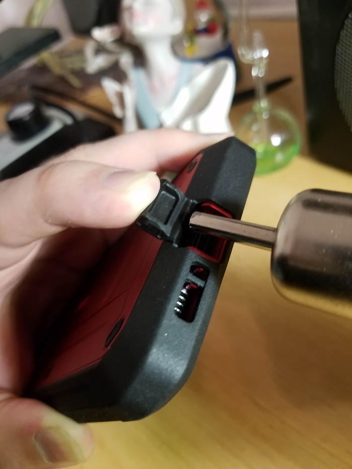 Я отогнул ее назад, и прогрел феном, после в таком положении положил на холод. Заглушка перестала сама закрываться, но вставлять зарядку стало удобнее
