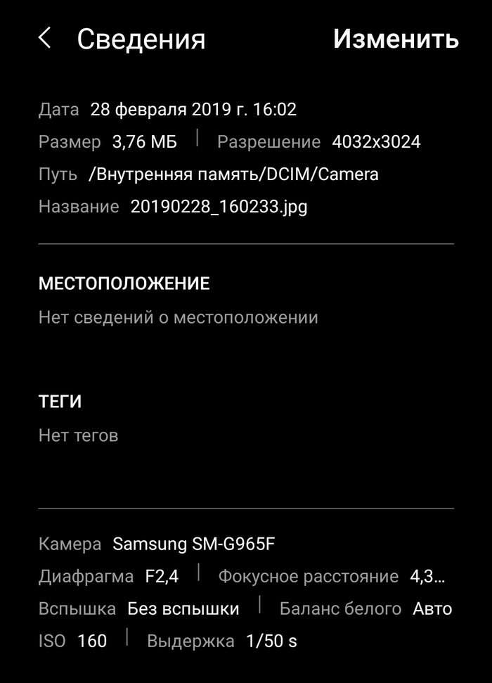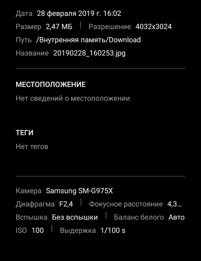 Ниже привожу фото сделанным на мой смартфон (при стандартных настройках) и для тех кто не умеет читать теги – скриншотом, свойства этого фото.